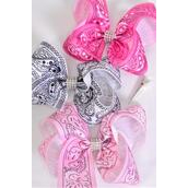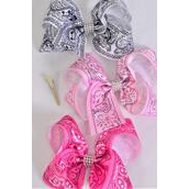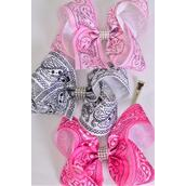 Hair Bow Jumbo Bandana Paisley Pink Mix Grosgrain Bow-tie / 12 pcs Bow = Dozen