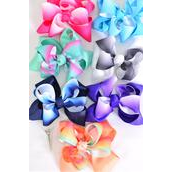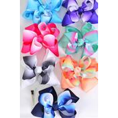 Hair Bow Jumbo Double Layered Gradient Tiedye Grosgrain Bow-tie / 12 pcs Bow = Dozen