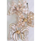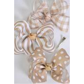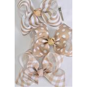 Khaki , Alligator Clip , Bow - 6" x 5" Wide , 4 of each Pattern Asst , Clip Strip & UPC Code
