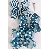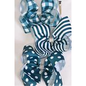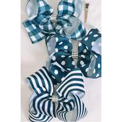 Hunter Green , Alligator Clip , Bow - 6" x 5" Wide , 4 of each Pattern Asst , Clip Strip & UPC Code