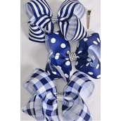Navy , Alligator Clip , Bow - 6" x 5" Wide , 4 of each Pattern Asst , Clip Strip & UPC Code
