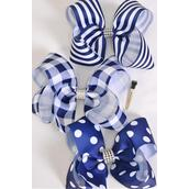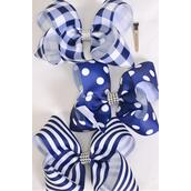 Hair Bow Jumbo Plaid Polka dots Stripe Pattern Mix Grosgrain Bow-tie Navy / 12 pcs Bow = Dozen