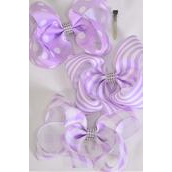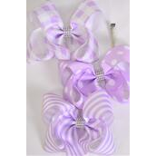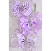 Lavender , Alligator Clip , Bow - 6" x 5" Wide , 4 of each Pattern Asst , Clip Strip & UPC Code