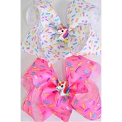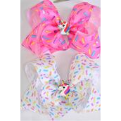 Hair Bow Sprinkles Center w Unicorn Charm Grosgrain Bow-tie / 12 pcs Bow = Dozen