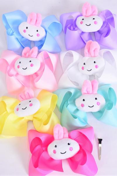Hair Bow Jumbo Easter Bunny Stuffed Toy Charm Grosgrain Bow-tie Pastel / 12 pcs Bow = Dozen