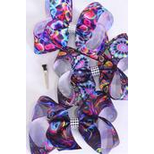 Hair Bow Jumbo Abstract Art Grosgrain Bow-tie / 12 pcs Bow = Dozen