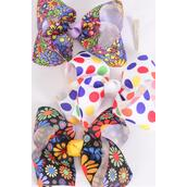 Hair Bow Jumbo Abstract Flower Power Peace Sign Polka dots Grosgrain Bow-tie / 12 pcs Bow = Dozen