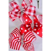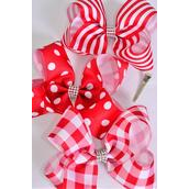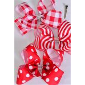 Red Mix , Alligator Clip , Bow - 6" x 5" Wide , 4 of each Pattern Asst , Clip Strip & UPC Code