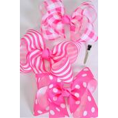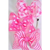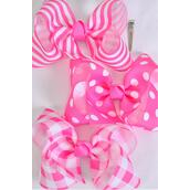 Pink Mix , Alligator Clip , Bow - 6 " x 5" Wide , 4 of each Pattern Asst , Clip Strip & UPC Code