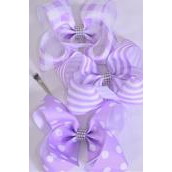 Lavender , Alligator Clip , Bow - 6" x 5" Wide , 4 of each Pattern Asst , Clip Strip & UPC Code