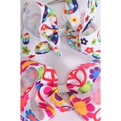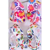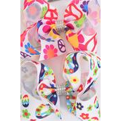 Hair Bow Jumbo Flower Power Peace Sign Mix Grosgrain Bow-tie / 12 pcs Bow = Dozen