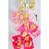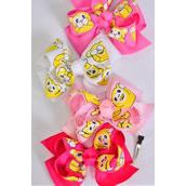 Hair Bow Jumbo Double Layered Cute Monkey Pink Mix Grosgrain Bow-tie / 12 pcs Bow = Dozen