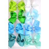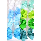 Hair Bow Jumbo Green Blue Mix Alligator Clip Grosgrain Bow-tie / 12 pcs Bow = Dozen
