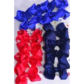 Hair Bows 48 pcs Grosgrain Bow-tie Red Royal Blue Navy Mix / 12 card = Dozen