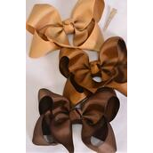 Hair Bow Jumbo Brown Khaki Color Mix Grosgrain Bow-tie / 12 pcs Bow = Dozen