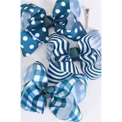 Hunter Green , Alligator Clip , Bow - 6" x 5" Wide , 4 of each Pattern Asst , Clip Strip & UPC Code