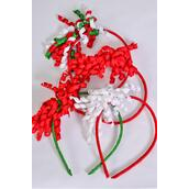 Headband Horseshoe Twirl Red White Green Color Mix Grosgrain Fabric / 12 pcs = Dozen