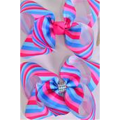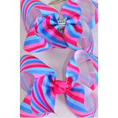 Hair Bow Jumbo Stripe Blue Pink Color Mix Grosgrain Bow-tie / 12 pcs Bow = Dozen