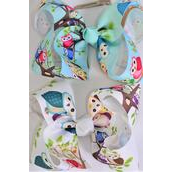 Hair Bow Jumbo Owl Pattern Mix Grosgrain Bow-tie / 12 pcs Bow = Dozen