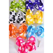 Hair Bow Jumbo Polka dots Citrus Grosgrain Bow-tie / 12 pcs Bow = Dozen