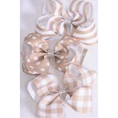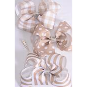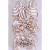 Khaki , Alligator Clip , Bow - 6" x 5" Wide , 4 of each Pattern Asst , Clip Strip & UPC Code