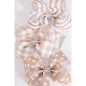 Hair Bow Jumbo Plaid Polka dots Stripe Mix Grosgrain Bow-tie Khaki Mix / 12 pcs Bow = Dozen