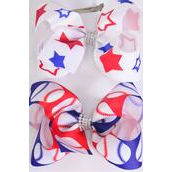 Hair Bow Jumbo Patriotic Baseball Star Pattern Mix Grosgrain Bow-tie / 12 pcs Bow = Dozen