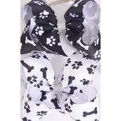Hair Bow Jumbo Paw and Dog Bone Print Grosgrain Bow-tie / 12 pcs Bow = Dozen