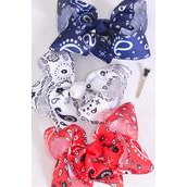 Hair Bow Jumbo Bandana Paisley Grosgrain Bow-tie / 12 pcs = Dozen