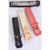 Hair Barrette French Clip Flower Brush Stroked / DZ
