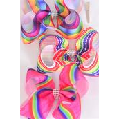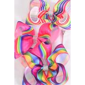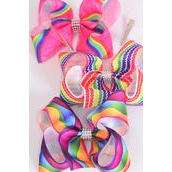 Hair Bow Jumbo Abstract Chevron Rainbow Stripe Pattern Mix Grosgrain Bow-tie / 12 pcs Bow = Dozen