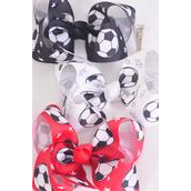 Hair Bow Jumbo Soccer Red White Black Color Mix Grosgrain Bow-tie / 12 pcs Bow = Dozen
