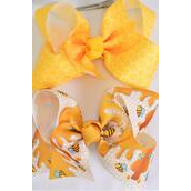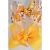 Hair Bow Jumbo Honey Bee Honeycomb Pattern Mix Grosgrain Bow-tie / 12 pcs Bow = Dozen