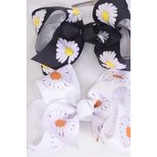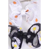 Hair Bow Jumbo Flower Daisy Black White Color Mix Grosgrain Bow-tie / 12 pcs Bow = Dozen