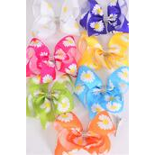 Hair Bow Jumbo Flower Daisy Grosgrain Bow-tie Multi / 12 pcs Bow = Dozen