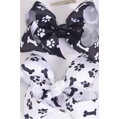 Hair Bow Jumbo Paw Dog Bone Print Grosgrain Bow-tie / 12 pcs Bow = Dozen
