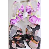 Hippo , Alligator Clip , Bow - 6" x 5" Wide , 6 of each Pattern Asst , Clip Strip & UPC Code