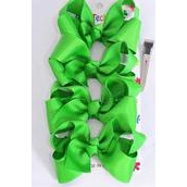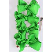 Green , Alligator Clip , Bow Size - 3" x 2" Wide , 4 pcs per card , 12 card = Dozen