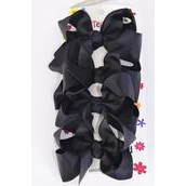 Black , Alligator Clip , Bow Size - 3" x 2" Wide , 4 pcs per card , 12 card = Dozen
