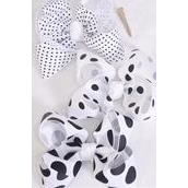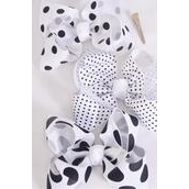 Hair Bow Jumbo Polka dot Mix White Grosgrain Bow-tie / 12 pcs Bow = Dozen