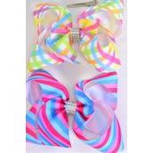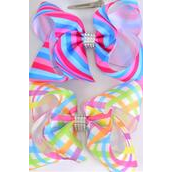 Hair Bow Jumbo Plaid Strip Pattern Mix Grosgrain Bow-tie / 12 pcs Bow = Dozen