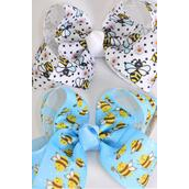 Hair Bow Jumbo Flower w Cute Honey Bees Mix Grosgrain Bow-tie / 12 pcs Bow = Dozen