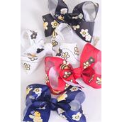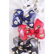 Hair Bow Jumbo Honey Bee W happy Flowers Grosgrain Bow-tie / 12 pcs Bow = Dozen