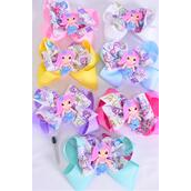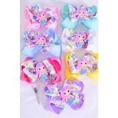 Hair Bow Jumbo Double Layered Mermaid Charm Grosgrain Bow-tie Pastel / 12 pcs Bow = Dozen
