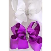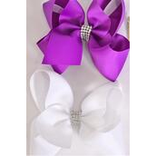 Hair Bow Jumbo Center Clear Stones Violet White Mix Grosgrain Bow-tie / 12 pcs Bow = Dozen