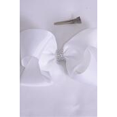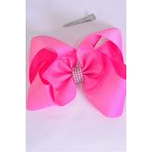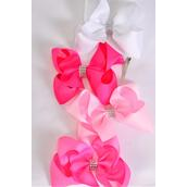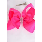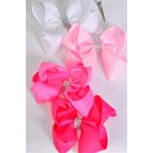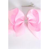 Hair Bow Jumbo Center Clear Stones Pink Mix Grosgrain Bow-tie / 12 pcs Bow = Dozen
