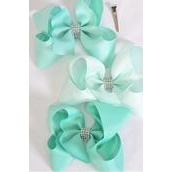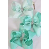 Hair Bow Jumbo Center Clear Stones Mint Green Mix Grosgrain Bow-tie / 12 pcs Bow = Dozen