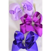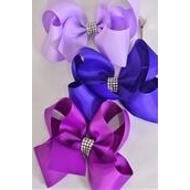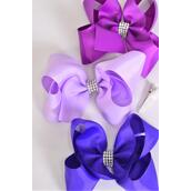 Hair Bow Jumbo Center Clear Stones Purple Color Mix Grosgrain Bow-tie / 12 pcs Bow = Dozen