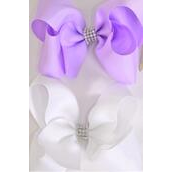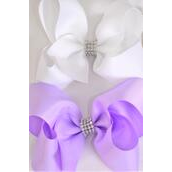 Hair Bow Jumbo Center Clear Stones Lavender White Mix Grosgrain Bow-tie / 12 pcs Bow = Dozen