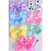 Hair Bow Large Polka- Dots Grosgrain Bow-tie Pastel / 12 pcs Bow = Dozen